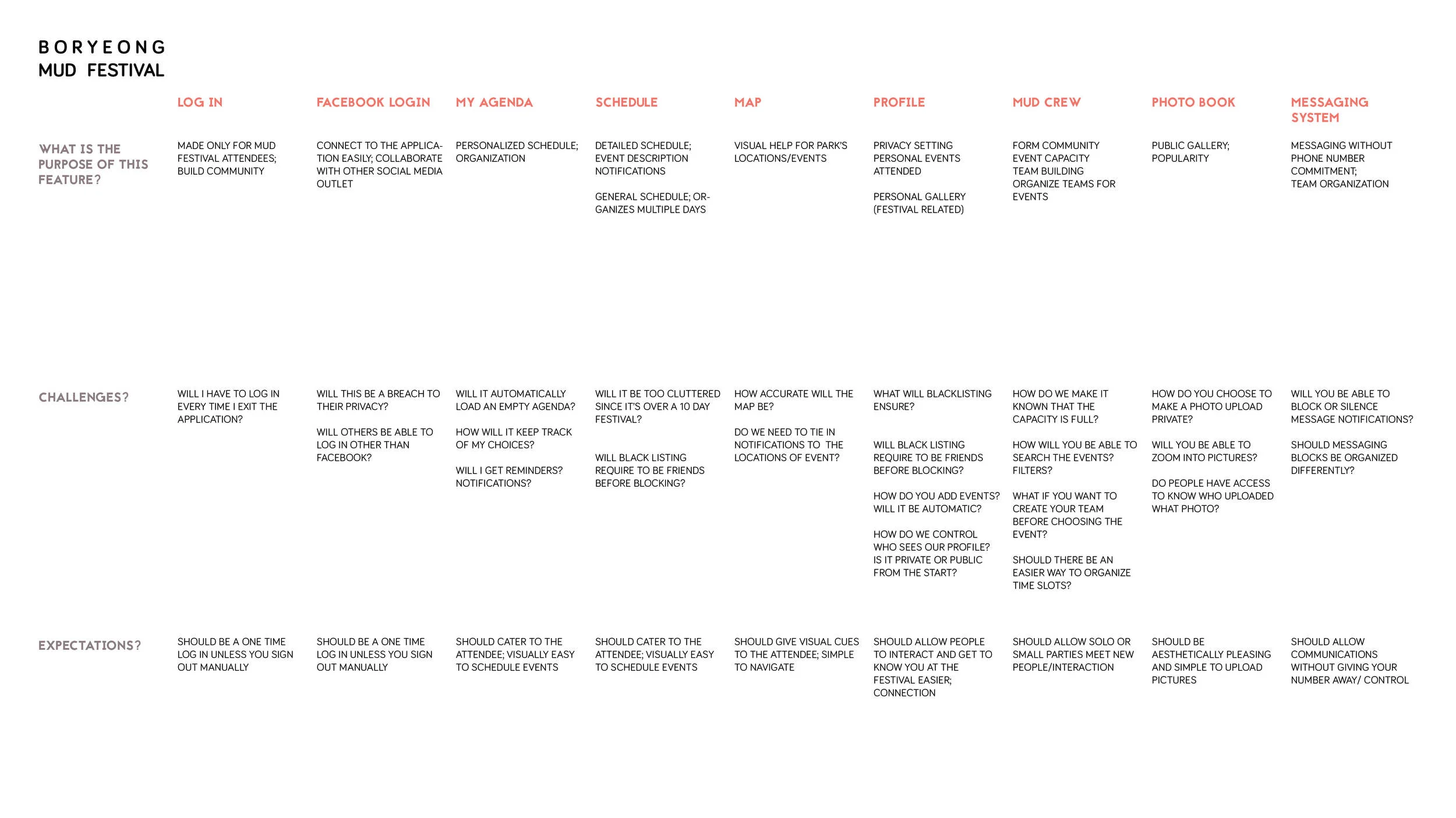 Boryeong Mud Festival focuses on a refreshing experience and carries a fun ambiance. By incorporating a simple and clean look to the website, the mud and minimalist designs leaves the viewer with a sense of wonder for what the festival may offer. Originally a dark website, the color palette would change to a more lively, summer-related theme to help maintain a semblance of youth. It will employ a system that would help advertise an overall friendly festival, with influences of Korean culture.